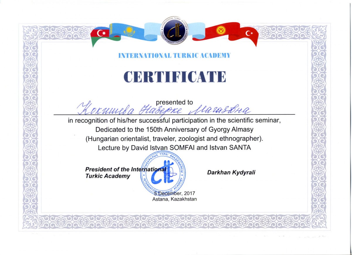 Халықаралық Түркі академиясы Венгрияның Қазақстандағы елшілігімен бірлесіп, 2017 жылғы 5 желтоқсан күні белгілі Мажар шығыстанушысы, саяхаттанушы, этнограф-ғалым Дьёрдь Алмашидің туғанына 150 жыл толуына орай дөңгелек үстел және фотосурет көрмесін ұйымдастырды. Д.Алмаши ХХ ғ. басында Орталық Азияның Іле өзені, Ыстықкөл және Тянь Шань тауы өңірлеріне экспедиция ұйымдастырып, зерттеулер жүргізген.