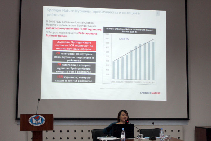Springer Nature лицензиялық менеджері Александрова Ирина Алексеевна лектор ретінде сөз сөйледі. Ол келесі сұрақтарға жауап берді: