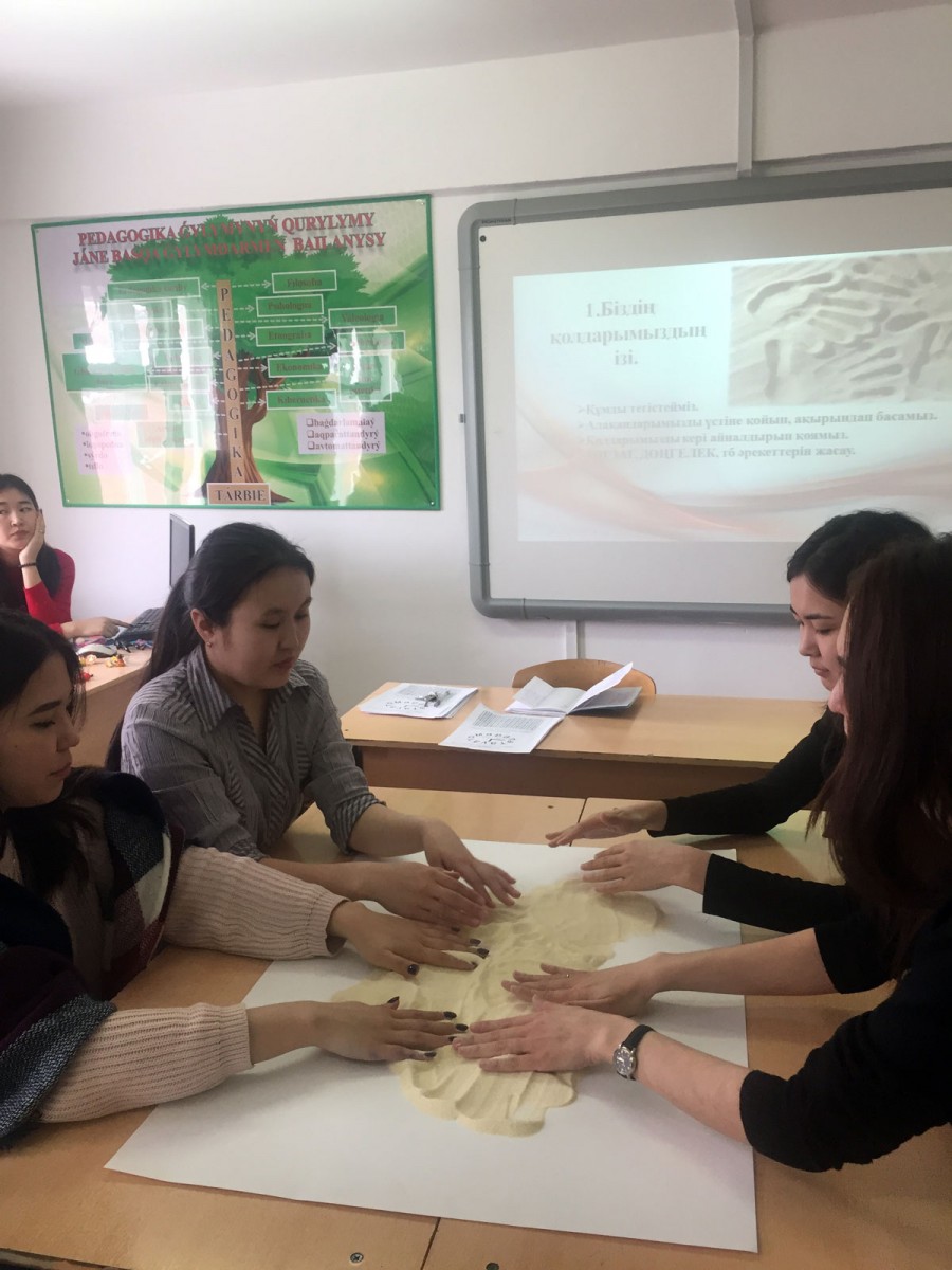 On 5th February 2019 within the discipline “Practical Psychology” the students of the 3rd course of the specialty “Pedagogy and Psychology” conducted the workshop “Clay therapy” (under the leadership of M.S.Sc., deputy Docent A.T. Ayazbayeva). The students divided into groups and each group fulfilled the tasks with clay and learned the method of solving them.