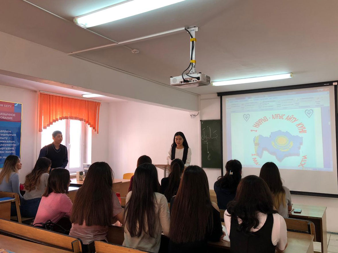 2019 жылдың 1 наурызында ИЯК-16-02 тобында Алғыс күніне арналған кураторлық сағат өтті. Топ кураторы Дүйсек Түлек студенттерді осы мерекенің шығу тарихымен таныстырды. Студенттер осы тақырыпқа презентация дайындады және осы күнді Қазақстанның барлық халықтары достығының символы, қазақ халқының қонақжайлылығының көрсеткіші екендігін айтты.