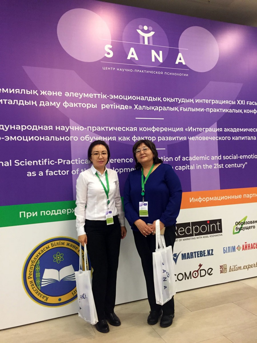 2019 жылдың 26-27 сәуірінде педагогика кафедрасының оқытушылары «SANA» ғылыми-практикалық психология орталығы ұйымдастырған «XXI ғасырда адамзат капиталын дамыту факторы ретінде академиялық және әлеуметтік-эмоционалдық оқытуды біріктіру» тақырыбындағы халықаралық ғылыми-практикалық конференцияға қатысты. Конференцияның бағыты – бәсекеге қабілеттілік пен психологиялық өмірге төзімділік деңгейін арттыру үшін қажетті болып табылатын білім алушылардың әлеуметтік-эмоционалдық құзыреттіліктерін дамыту.