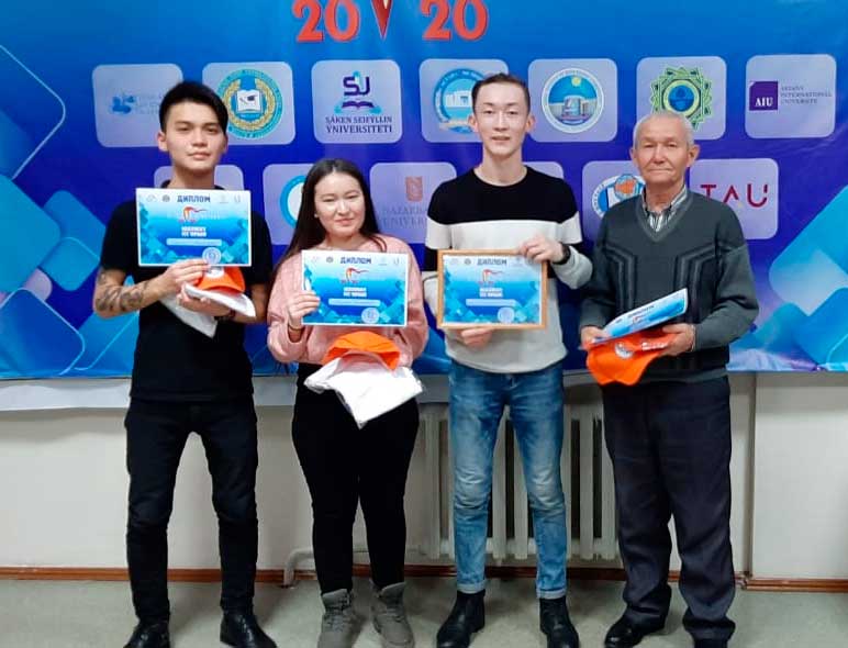 Үшінші орынды иеленген біздің институттың құрама командасы: Мерген Әділхан (ИК-18-01 тобы), Арманұлы Ескендір (ПМНО-18-01 тобы) және Тойшыбай Лазима (ДОВК-18-01 тобы) )