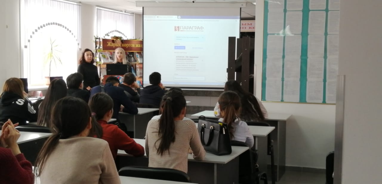 2020 жылдың 25 ақпанында ынтымақтастық және серіктестік туралы келісім аясында «Параграф» ақпараттық жүйесінің мамандары – оқу менеджері Антужита Регина және өкілдік басшысының орынбасары Айгүл Кадырбаева «Құқық» білім беру бағдарламасының студенттері үшін ИС «Параграф» АЖ-ны заңгерлердің кәсіби қызметінде қолдану дағдылары мен ерекшеліктері туралы ашық дәріс өткізді.