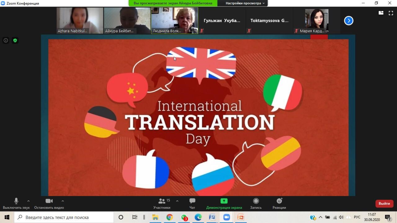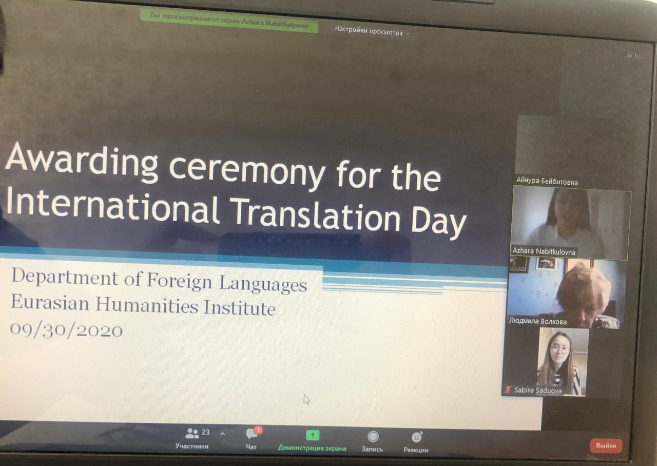 Іс-шара соңында гуманитарлық ғылымдар магистрі, кафедра оқытушысы А.Н. Умуткулова «International Translation Day» байқауының нәтижелерін жариялады: