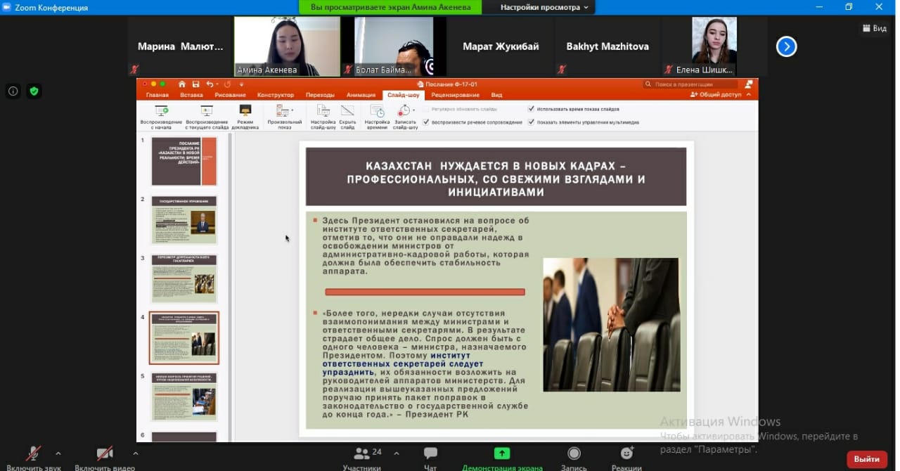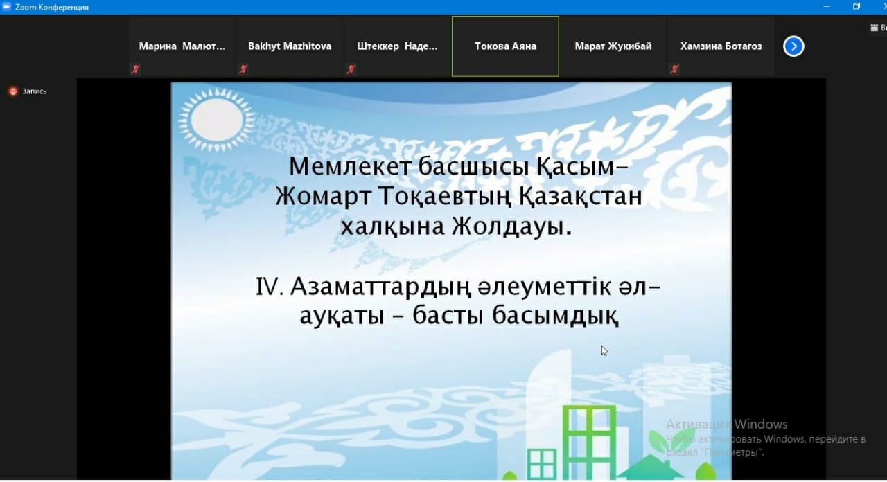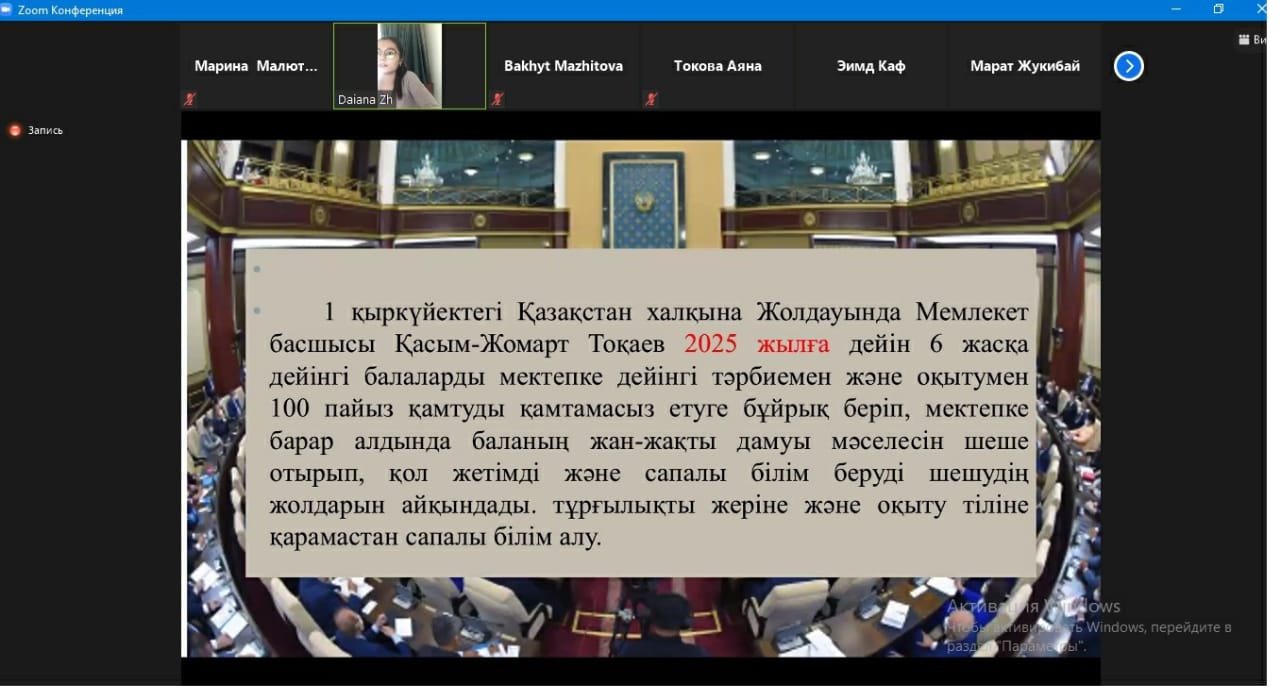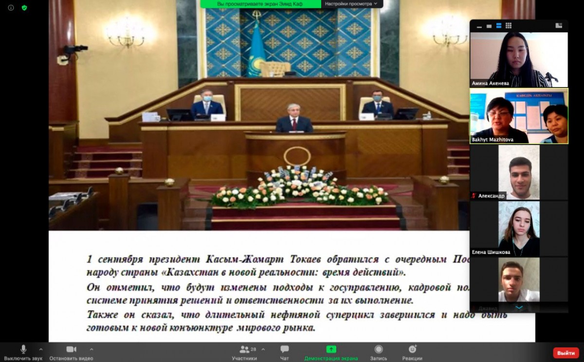 Дөңгелек үстел барысында кафедра профессоры э.ғ.к., Жүкібай М.Ы. бұл жолдаудың ерекшеліктеріне: тұрғындарға зейнетақысының бір бөлігін алуға рұқсат ету, толыққанды білім үдерісі үшін қажетті барлық функциясы бар бір онлайн білім беру платформасын шұғыл әзірлеу қажеттігін және т.б. маңызды салалар туралы тоқталып кетті.