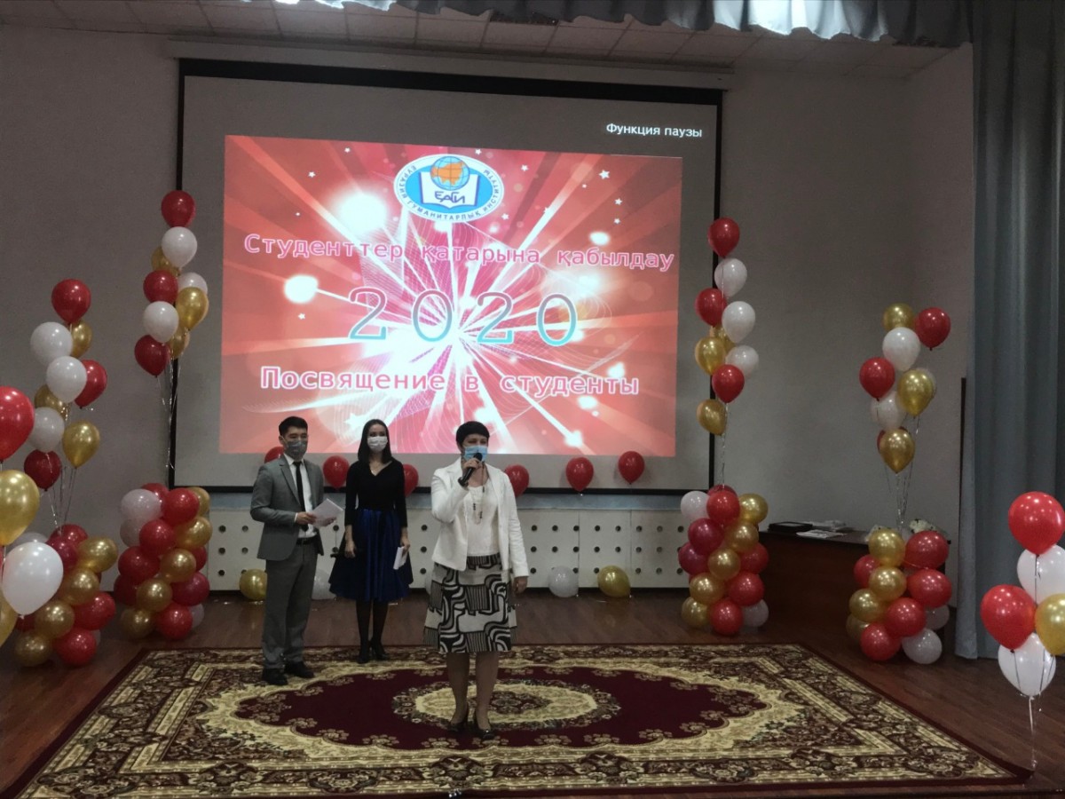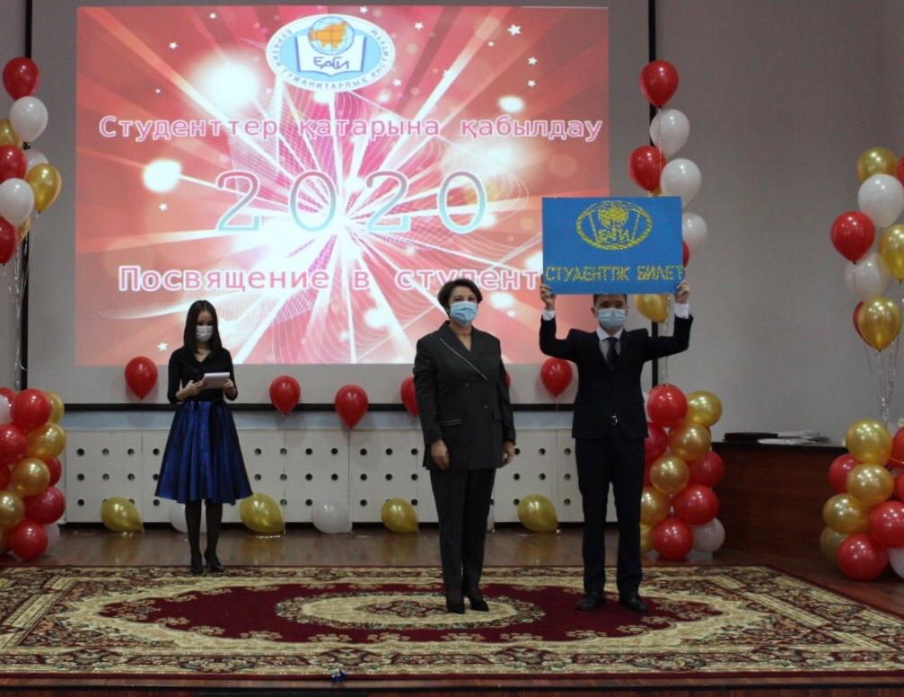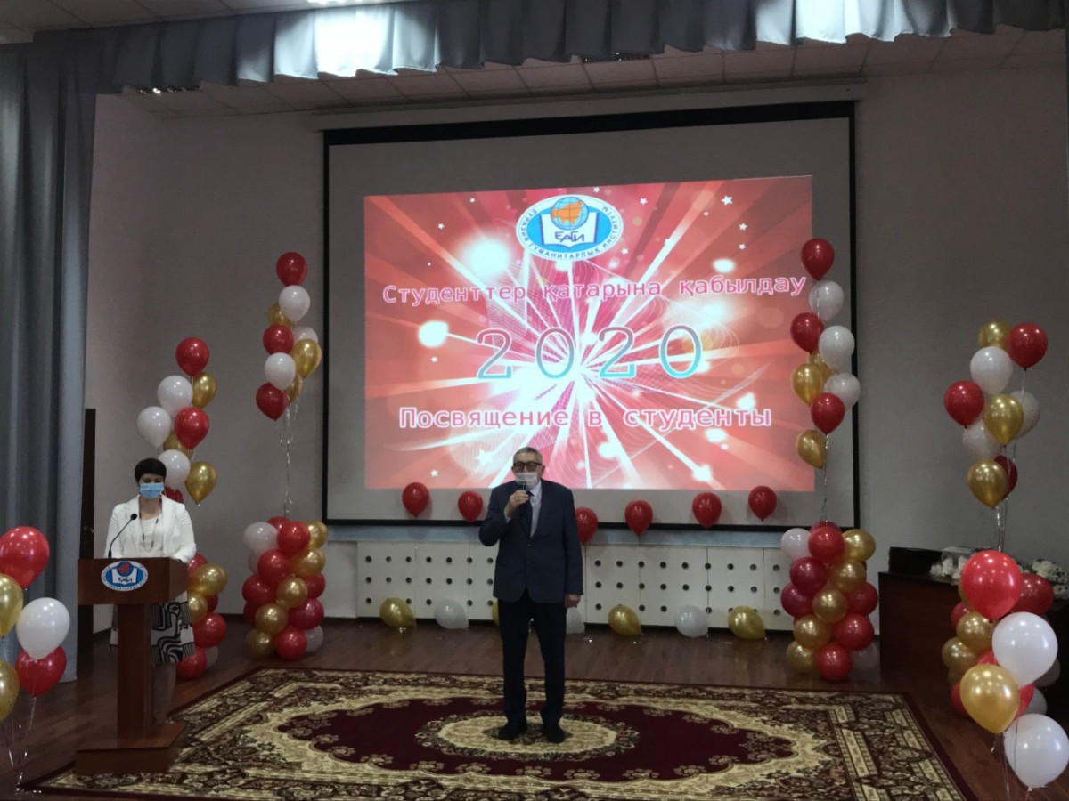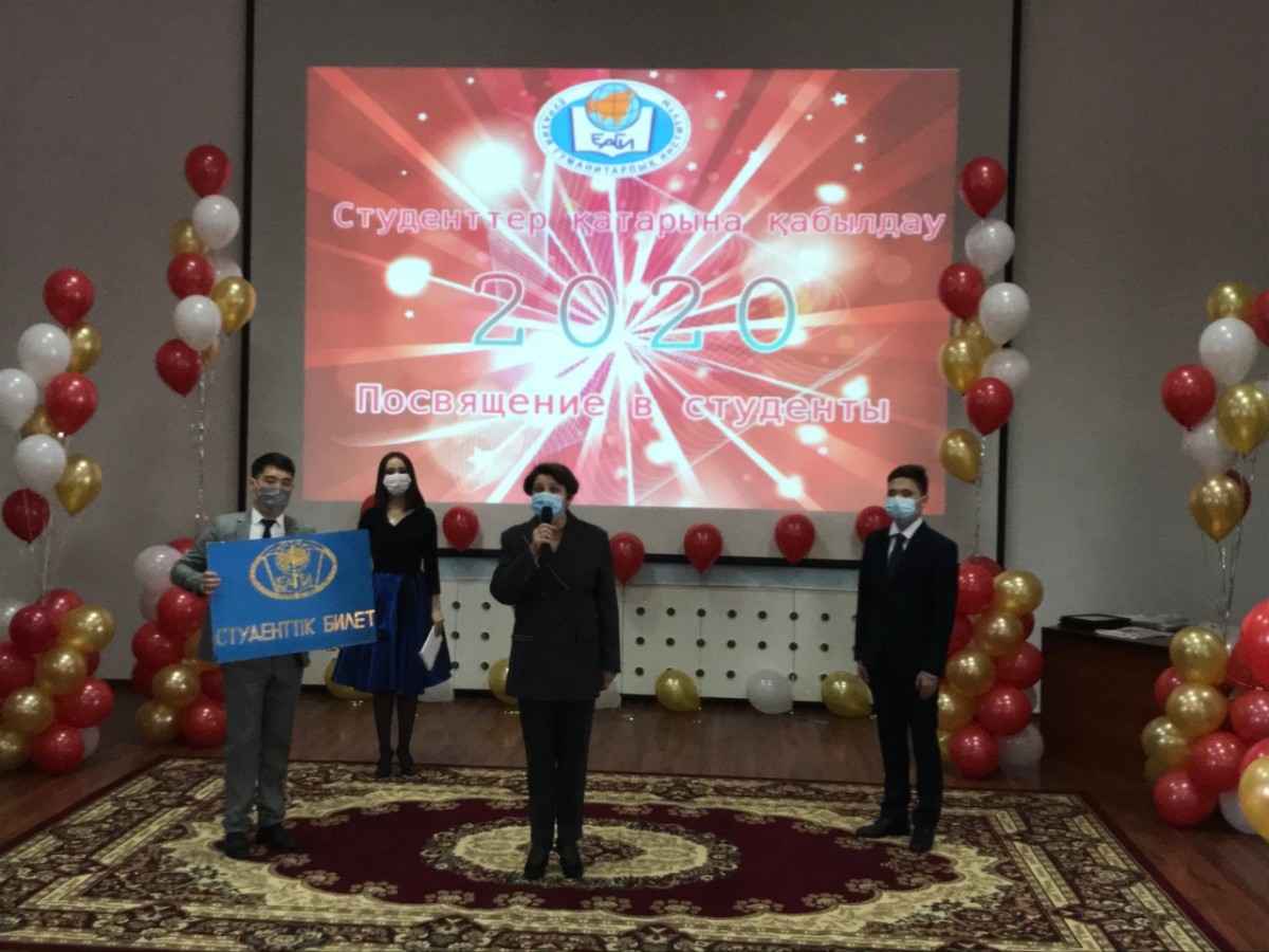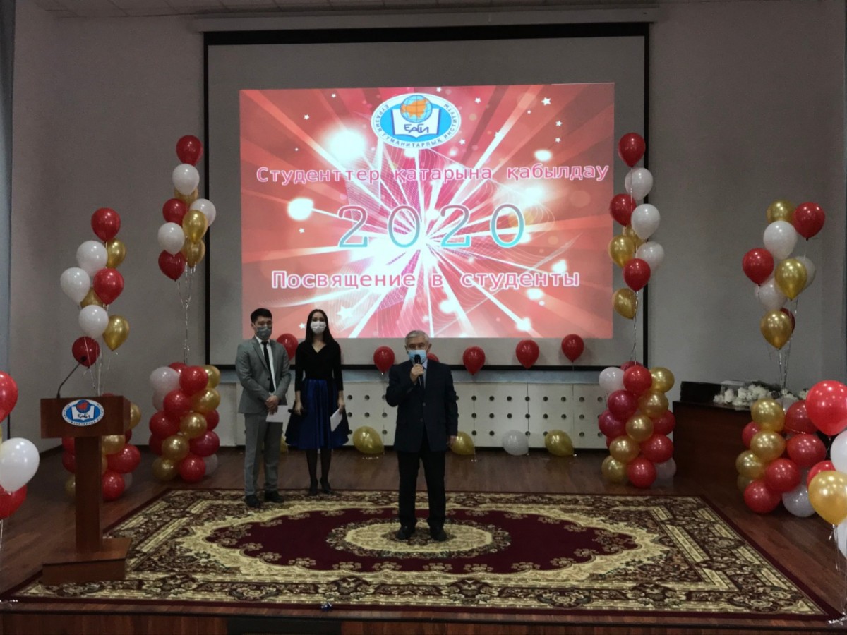 2020 жылдың 29 қазанында Еуразия гуманитарлық институтында бірінші курс студенттерін Еуразия гуманитарлық институтының студенттері қатарына қабылдау салтанатты рәсіміне арналған бейнеконференция өтті. Рәсімнің басында ЕАГИ студенттерінің әнұраны шырқалды. Оқу және ғылыми жұмыс жөніндегі проректор, тарих ғылымдарының докторы, профессор Қ.Ә. Ахметов құттықтау сөз сөйлеп, студенттерге оқу жолында табыс тілеп, оларды оқуға жауапкершілікпен қарауға, белсенділік пен бастамашылдық танытуға шақырды. Бірінші проректор психология ғылымдарының кандидаты, профессор А.Д. Исмаилов бірінші курс студенттерін құттықтап, оларға оқуда табыс, білімге ұмтылыс және институттың қоғамдық және ғылыми өмірінде өзін-өзі жетілдіруді тіледі. Сондай-ақ Амангелді Жақсылықұлы Қазақстан Республикасы Білім және ғылым министрлігі ұйымдастырған Жоғары оқу орындары студенттерінің ғылыми-зерттеу жұмыстарының республикалық конкурсының, пәндік студенттік олимпиадалар мен халықаралық конкурстардың қорытындысы бойынша жүлделі орындар үшін дипломдар табыстады. Іс-шараның салтанатты рәсіміне бірінші курс студенті Абдуалиев Жансерік қатысып, дәстүрлі түрде сахнада студенттің антын үш тілде айтты. Институт деканы, педагогика ғылымдарының кандидаты, доцент Т.Н. Кемайкина бірінші курс студентіне студенттік билетті табыс етті. Сонымен қатар тәрбие ісі жөніндегі проректор, педагогика ғылымдарының кандидаты, профессор Я.Н. Оспанова, заң пәндері кафедрасы меңгерушісінің орынбасары Қ.С. Қалдыбаев, шетел тілдері кафедрасының меңгерушісі, педагогика ғылымдарының кандидаты, доцент Л.В. Волкова, экономикалық және математикалық пәндер кафедрасының меңгерушісі, техника ғылымдарының кандидаты, доцент Г.Д. Тәжбенова, қазақ және орыс филологиясы кафедрасының меңгерушісі, филология ғылымдарының кандидаты, доцент Л.Н. Дәуренбекова, педагогика және психология кафедрасының меңгерушісі, педагогика ғылымдарының кандидаты, профессор Н.Т. Нығыманова бірінші курс студенттерін айтулы күндерімен құттықтады. Шара соңында бірінші курс студенттері үшін кәсіби әртістердің музыкалық құттықтаулары орындалды. Барлық оқытушылар мен университет басшылығының атынан студенттерге өздерінің жаңа мәртебесін ақтауға, білім алуға және болашақ мамандыққа қажетті дағдыларды игеруге ұмтылуды тілейміз! Vivat Academia! Vivant professores!