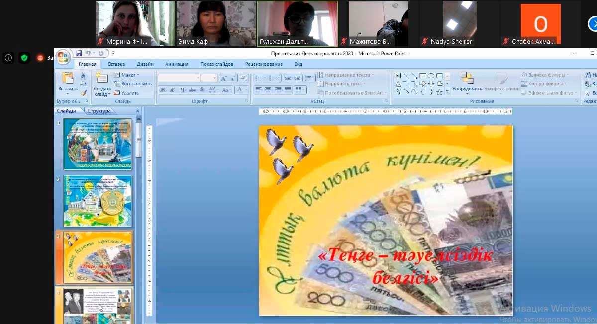 2020 жылдың 12 қарашасында экономикалық және математикалық пәндер кафедрасы Ұлттық валюта – теңге күніне арналған «Жаңа шынайылық жағдайында Қазақстанның қаржы-несие жүйесін жаңғырту» атты онлайн дөңгелек үстел өткізді. Дөңгелек үстел модераторы – магистр, аға оқытушы Ж.Д. Дәулетханова.