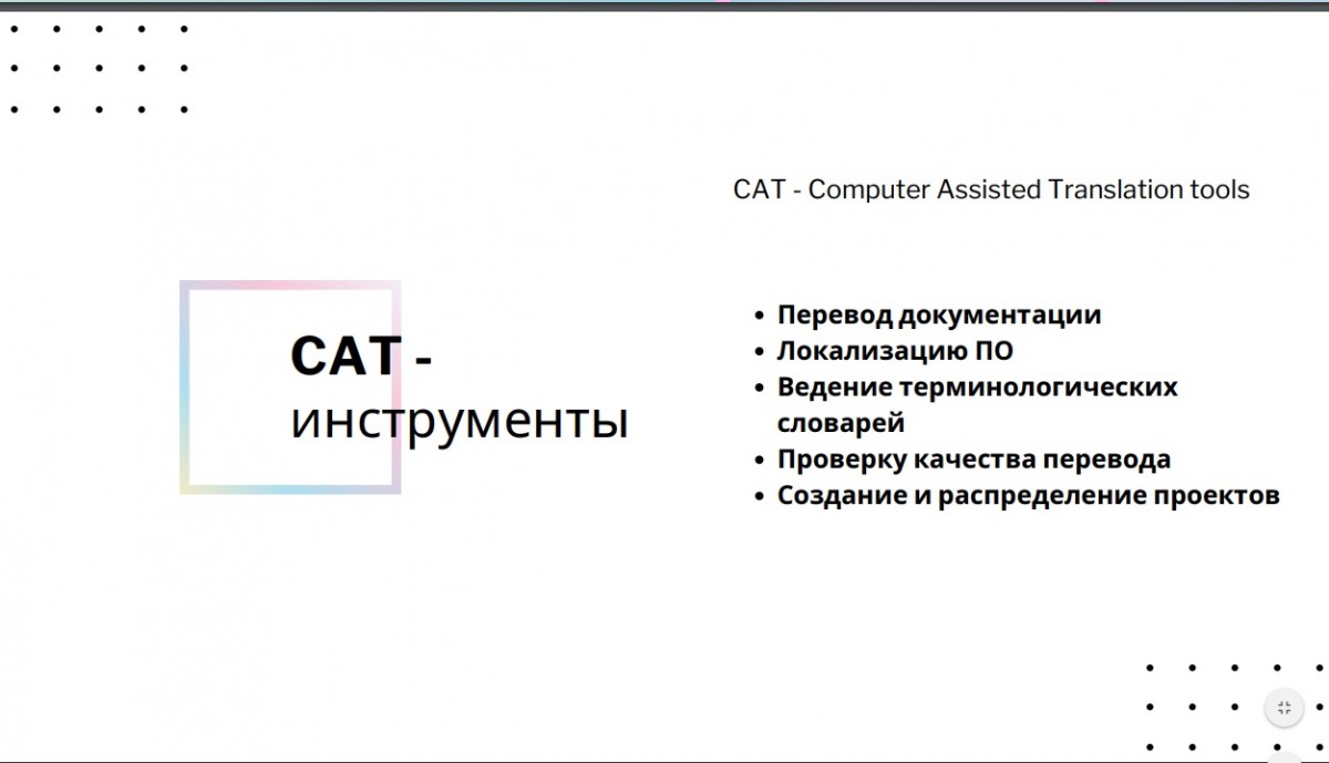 Шеберлік сабағын тілдік аудармалар орталығының директоры, ЕАГИ түлектері қауымдастығының мүшесі, жұмыс беруші Бочаров Евгений (2010 жылғы түлек) өткізді. Студенттер бүкіл әлемдегі ауызша аудармашылар қолданатын арнайы интернет бағдарламаларды, атап айтқанда KUDO, Interprefy, Interactio, Zoom, Voiceboxer және басқа бағдарламаларды пайдалануға қатысты пайдалы ақпарат алды. Сондай-ақ TRADOS, SMARTCAT, MEMOQ, MULTITERM және тағы басқа аудармашыларға арналған САТ-құралдар таныстырылды. Мастер-класс сұрақтар мен жауаптармен интерактивті режимде өтті.