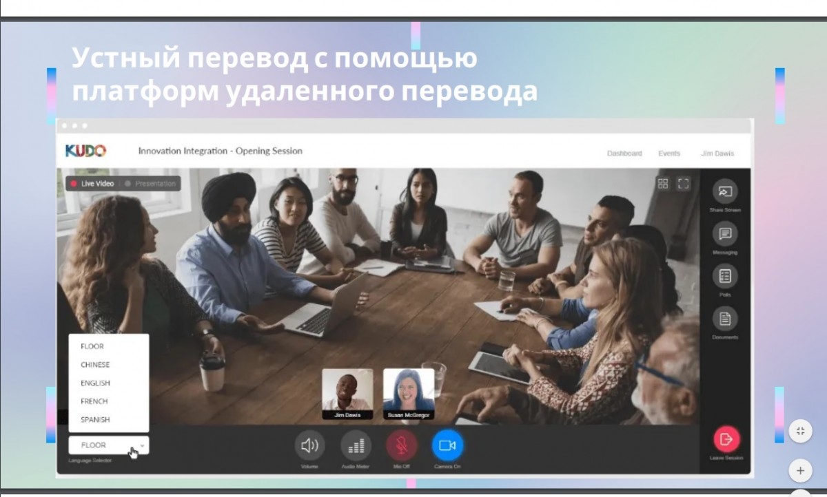 Шеберлік сабағын тілдік аудармалар орталығының директоры, ЕАГИ түлектері қауымдастығының мүшесі, жұмыс беруші Бочаров Евгений (2010 жылғы түлек) өткізді. Студенттер бүкіл әлемдегі ауызша аудармашылар қолданатын арнайы интернет бағдарламаларды, атап айтқанда KUDO, Interprefy, Interactio, Zoom, Voiceboxer және басқа бағдарламаларды пайдалануға қатысты пайдалы ақпарат алды. Сондай-ақ TRADOS, SMARTCAT, MEMOQ, MULTITERM және тағы басқа аудармашыларға арналған САТ-құралдар таныстырылды. Мастер-класс сұрақтар мен жауаптармен интерактивті режимде өтті.