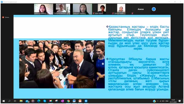 ПДК-18-01 тобының студенті Сейтханқызы Замира дайындаған бейнероликте Нұрсұлтан Назарбаевтың реформалары мен еліміздегі әлі шешілмеген мәселелерге қатысты Елбасының айтқан ойымен танысты. Ол мәселелер – мұғалім мәртебесі, ЖООлардағы жемқорлық, полиция жұмысы. Барлық студенттер өз ойларын ашық айтып, сол мәселелерді қандай жолмен шешу керектігі жөнінде ортақ дискуссия жүрді.