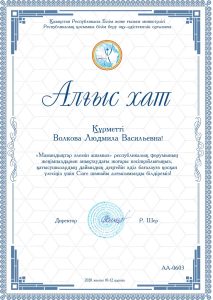 2020 жылдың 10-12 қарашасында п.ғ.к., доцент, ЕАГИ шетел тілдері кафедрасының меңгерушісі Л.В. Волкова форум жұмысын бағалау үшін қазылар алқасының құрамында қашықтан форматта балаларға қосымша білім беру бағыттары бойынша «Мамандықтар әлемін ашамыз» Республикалық онлайн-форумына қатысты.