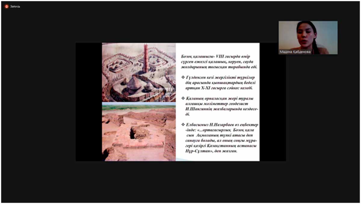 Қазақстан Республикасы Тәуелсіздігінің қалыптасуындағы Тұңғыш Президенттің рөлі туралы т.ғ.к., доцент Г.Б. Сүлейменова – «ҚР Тұңғыш Президенті Н. Ә. Назарбаевтың қызметіндегі Еуразияшылдық идеялары»; «Тарих» мамандығының студенттері: Хауек Ақжайық – «Н.Ә. Назарбаевтың жастарға арналған саясаты»; Омаров Тойлыбек – «Тәуелсіздіктің жеті қыры»; Кабденова Мадина – «Елордамыз Нұр-Сұлтан – жарқын болашақ кепілі».