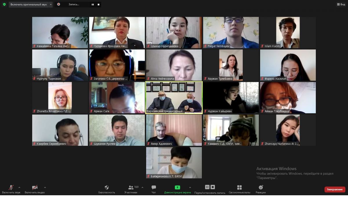 ҚБТ орталығының басшысы А.С. Темірғалиева онлайн-режимде «OES», «ZOOM» білім беру платформаларында ауызша емтихан өткізу, «Platonus» ААЖ-да тестілеу тағайындау, тұлғаны верификациялау жүйесін (прокторинг) сақтау және онлайн-емтихандардан өту нәтижелерін растау жөніндегі нұсқаулықпен таныстырды.