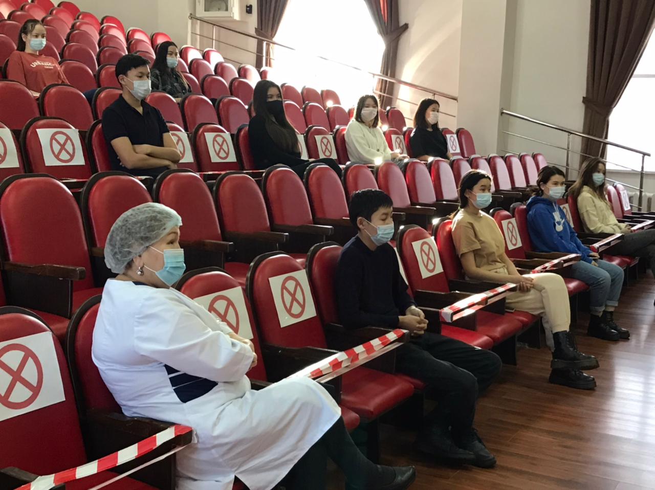 Институттың медицина қызметкері С.С. Рахметова студенттердің назарын СЭР талаптарын, жеке гигиена ережелерін мүлтіксіз орындауға аударды.