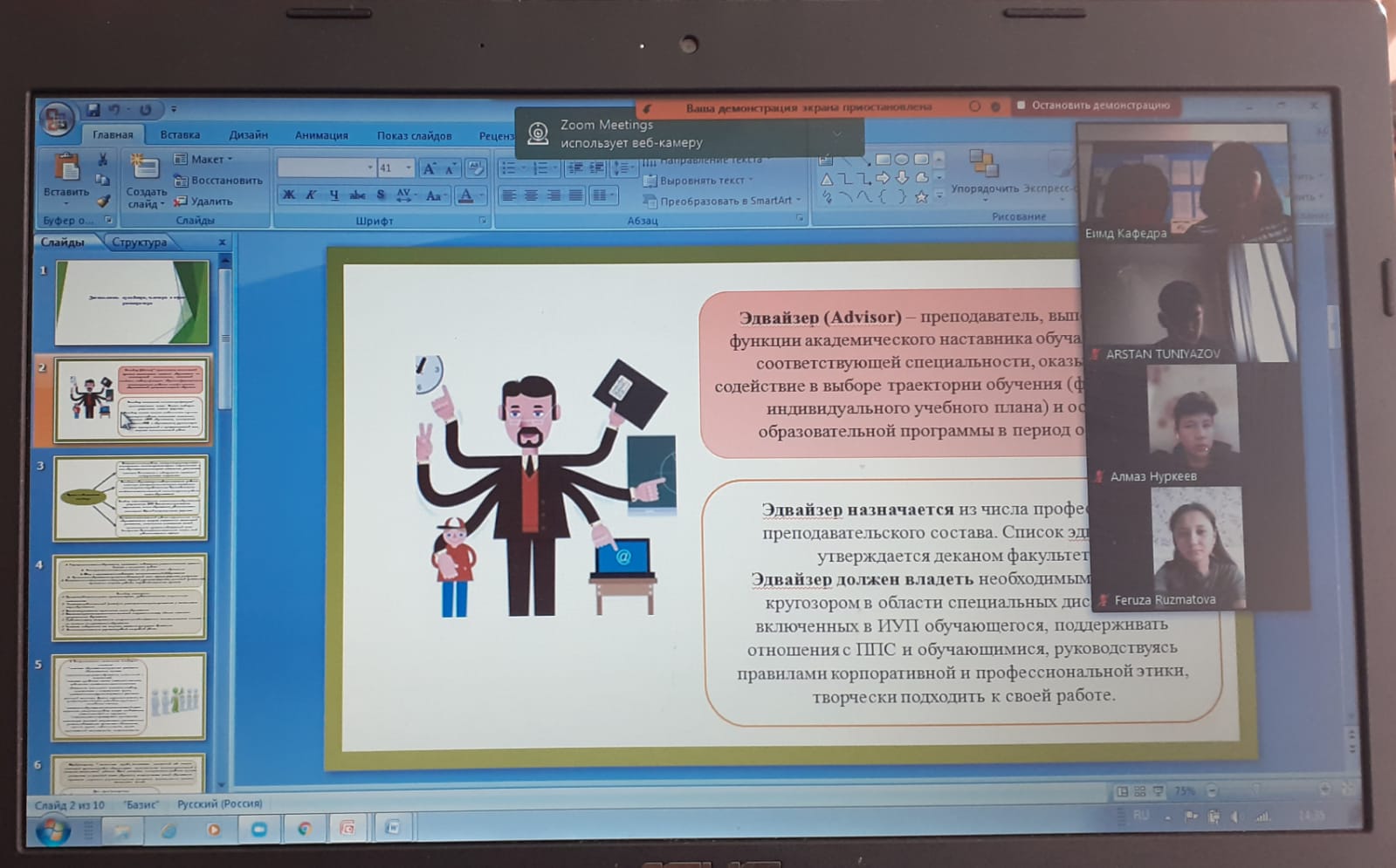 Студенттер үшін онлайн-конференция ұйымдастырылды, оның барысында эдвайзерлер негізгі траекториялар, міндетті және элективті пәндер туралы ақпарат ұсынды.