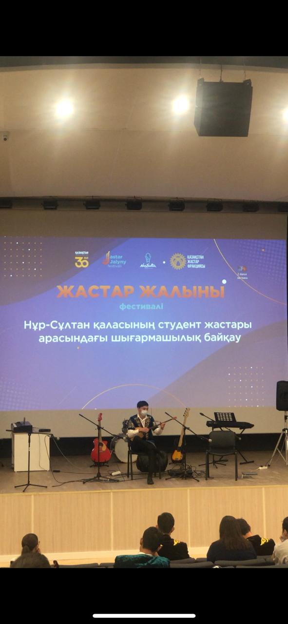 2021 жылдың 12 қазанында «Құқықтану» білім беру бағдарламасының 2-курс студенті, Жастар ісі жөніндегі комитеттің көшбасшысы Жүсіпбеков Мирас «Музыкалық аспаптар» номинациясында «Жастар Жалыны» қалалық студенттік фестивалінің конкурстық бағдарламасына қатысты. Бір апта бойы біздің дарынды студенттеріміз конкурстың тағы 8 номинациясына қатысады. Сәттілік пен жеңіс тілейміз!