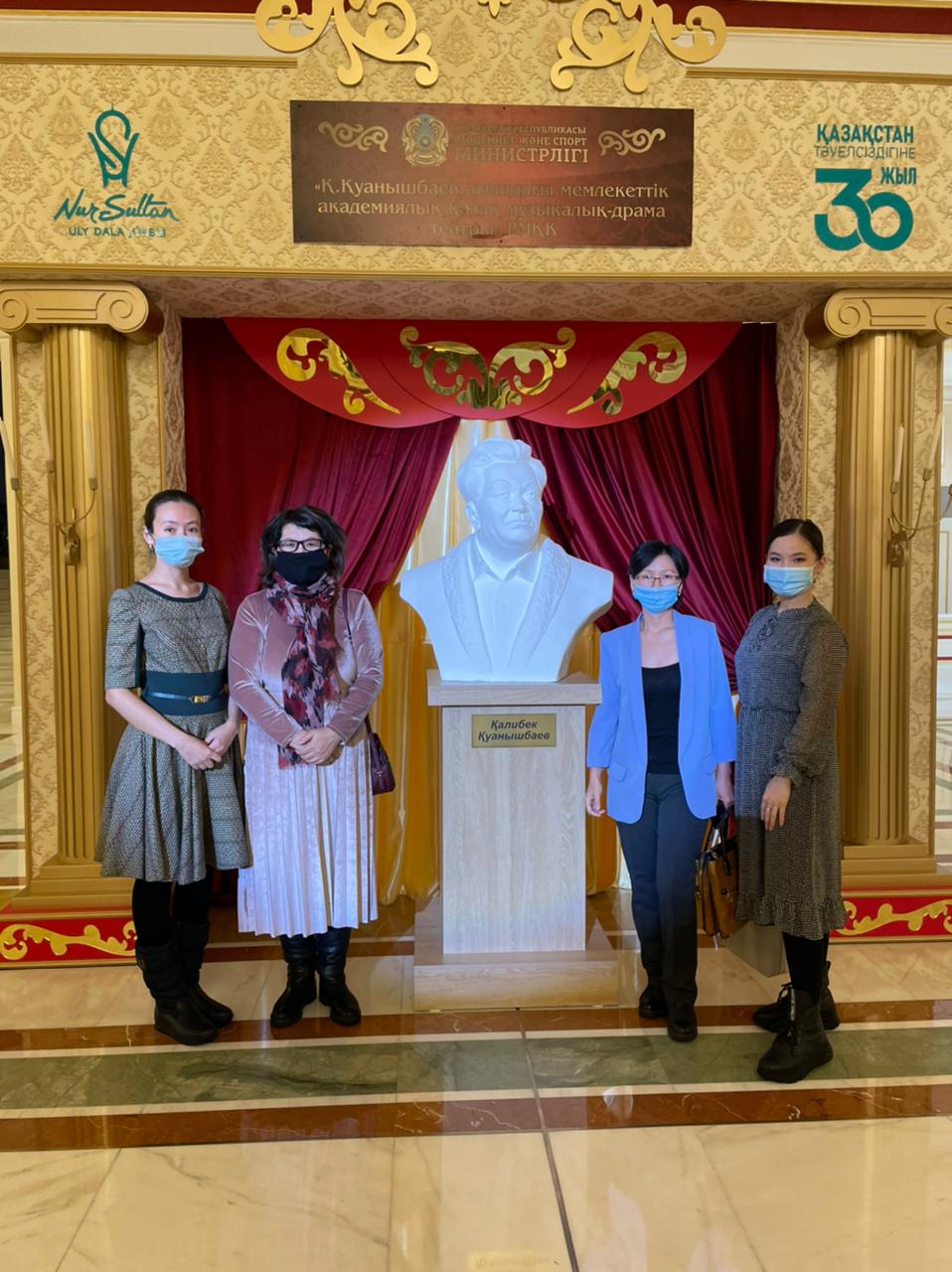 2021 жылғы 24 қарашада п.ғ.м., аға оқытушы А.М. Сарсенова және п.ғ.м., аға оқытушы С.М. Султанова Еуразия гуманитарлық институтының «Шетел тілі: екі шетел тілі» және «Аударма ісі» білім беру бағдарламаларының студенттерімен бірге (академиялық топтар ШТ-19-02, ИЯК-18-02, ИЯК-18-04 и АI-21-01) Қ. Қуанышбаев атындағы Мемлекеттік академиялық қазақ музыкалық драма театрына барды. Студенттер «Жұбайлар жұмбағы» спектаклін мемлекеттік тілде тамашалады. Спектакль актерлердің ойынымен және декорацияларымен көрермендерге жарқын және ұмытылмас әсер қалдырды.