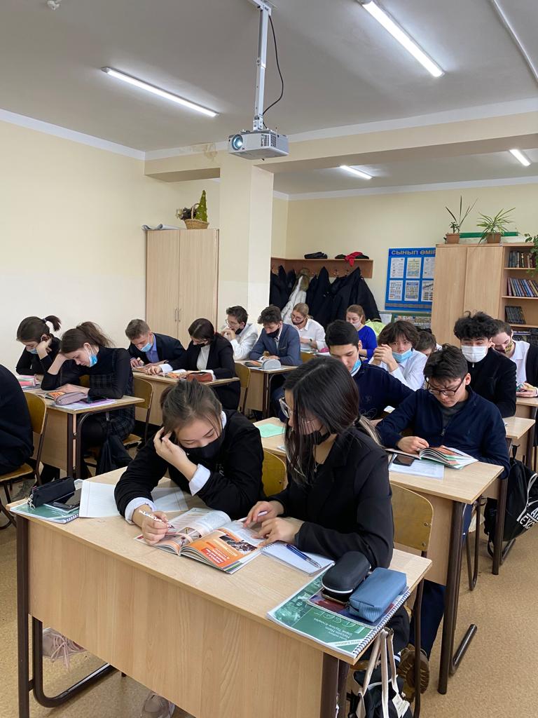 Сабаққа №32 мектеп-гимназиясының ағылшын тілі мұғалімдері Т.Р. Ахметвалиева, О.Ю. Черненко және өндірістік тәжірибе жетекшісі п.ғ.м., Еуразия гуманитарлық институтының шетел тілдері кафедрасының доценті А.У. Ильясова қатысты.