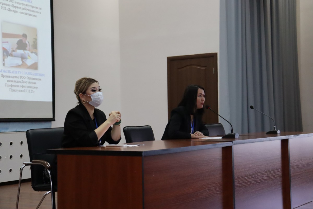 2022 жылдың 12 сәуірінде «Нұр-Сұлтан қаласы әкімдігінің халықты жұмыспен қамту орталығы» КММ өкілдері (жастарды жұмыспен қамту бөлімінің басшысы А.С. Усаева және маман Д.Ж. Доголакова) Еуразия гуманитарлық институтының бітіруші курс студенттерімен кездесу өткізді. Спикерлер қатысушыларға бірнеше жыл бойы жүзеге асырылатын «Жастар тәжірибесі» жобасы туралы айтып, орталықтың «Бірінші жұмыс орны», «Ұрпақтар келісімшарты», «Күміс жас» жобаларымен және жаңа бизнес-идеяларды жүзеге асыру үшін грант алу алгоритмімен таныстырды.