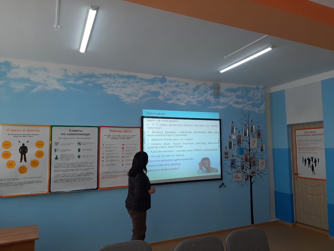Іс-шара мектеп психологымен бірлесіп ұйымдастырылды. Сабақ арт-терапия әдістерін қолдану арқылы өтті. Сабақтың қорытынды кезеңінде психологтың жұмысы туралы пікір алмасылып, оқушыларға психологиялық денсаулықты сақтау бойынша ұсыныстар берілді.