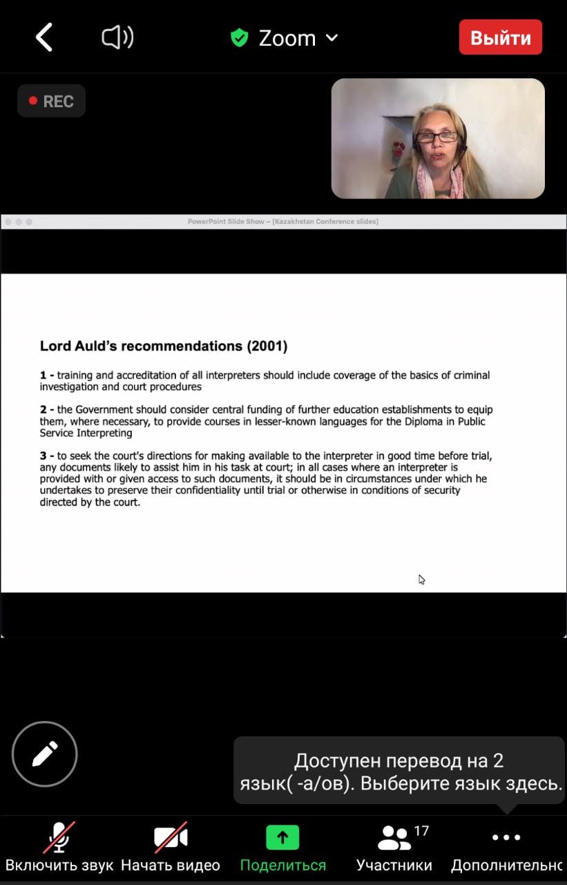 Іс-шараның мақсаты Қазақстан Республикасындағы сот және құқық қорғау органдарының жұмысына қатысатын аудармашылардың қызметін заңдастыру мен реттеудің халықаралық тәжірибесі мен келешегін талқылау болды.