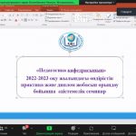 2023 жылдың 11 қаңтарында педагогика кафедрасы «Өндірістік практика және дипломдық жұмысты орындау процесі» тақырыбында онлайн-форматта әдістемелік семинар ұйымдастырды. Кафедраның бітіруші курс студенттері семинарға белсенді қатысып, өздерін қызықтырған өзекті сұрақтарға жауап алды. Ғылыми жетекшілері PhD., доцент А.Т. Аязбаева, PhD., доцент Н.А. Кударова, доцент Н.Ж. Болатбекова, доцент И.А.Тобагабылова, магистр, аға оқытушы А.С. Муликова, магистр, аға оқытушы А. Окай қатысты.