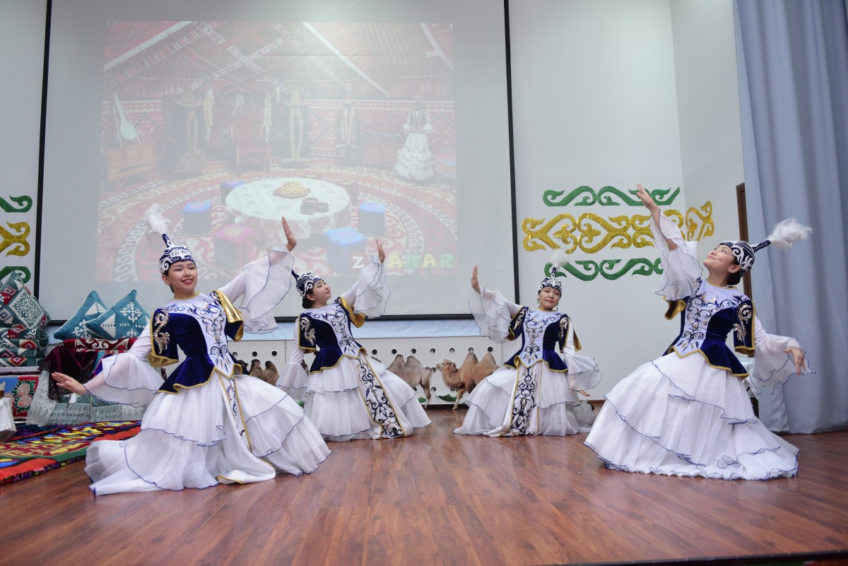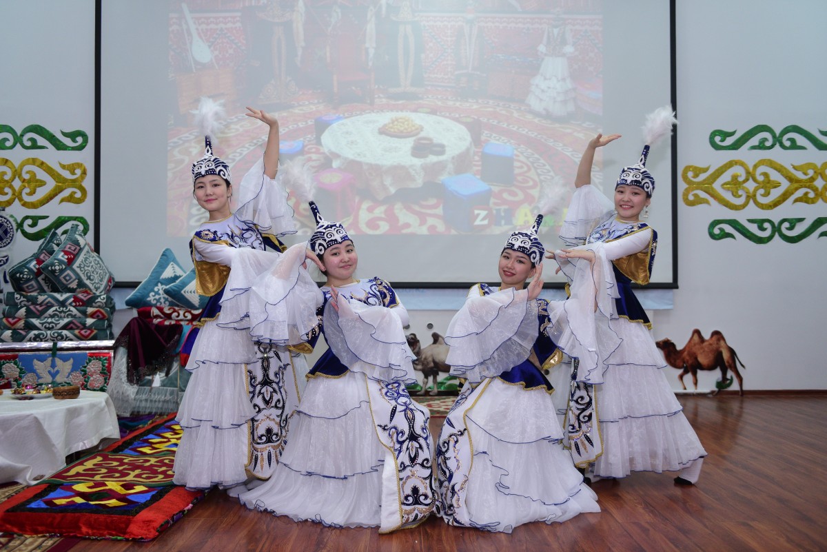 Сахнадан студенттерге музыкалық және би нөмірлері түрінде шығармашылық құттықтаулар айтылды. Мереке қонақтары «ҚЫЗ ҰЗАТУ», «ҚАЗАҚТЫҢ ҚОНАҚ КҮНІ», «БЕСІККЕ САЛУ», «БАЛАНЫ ҚЫРҚЫНАН ШЫҒАРУ» және «ТҰСАУ КЕСЕР» сияқты қазақтың ұлттық дәстүрлерін көрсетуді қамтитын театрландырылған қойылымды тамашалады.