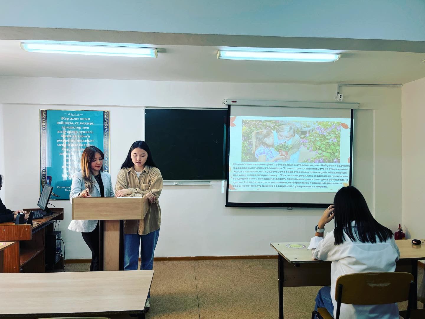 2023 жылғы 27 қыркүйекте кураторлар А.С. Абельдинов пен Г.А. Канафина ЮРТ-22-01, ЮР-21-01 академиялық топтарында (2-3 курстар, «Құқықтану» білім беру бағдарламасы) қарттар күнін мерекелеуге арналған тақырыптық кураторлық сағат өткізді.