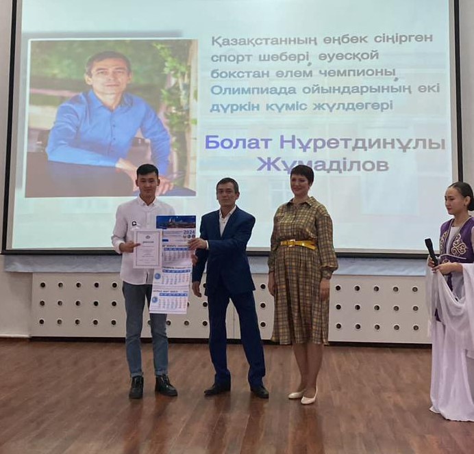 2023 жылғы 21 қарашада А.Қ.Құсайынов атындағы Еуразия гуманитарлық институтының студент жастарының Қазақстан Республикасының еңбек сіңірген спорт шебері, Қазақстанның еңбек сіңірген қайраткері, 1996 және 2000 жылдардағы Олимпиада ойындарының күміс жүлдегері және бокстан әлем чемпионы Болат Нұретдіұлы Жұмаділовпен кездесуі өтті. Іс-шара барысында Қазақ тілі мен әдебиеті кафедрасы мен Астана қаласы полиция департаментінің есірткі қылмысына қарсы күрес басқармасымен бірлесіп ұйымдастырған “Спорт в жизни человека” тақырыбындағы бейнероликтер байқауының қорытындысын шығару рәсімі өтті.