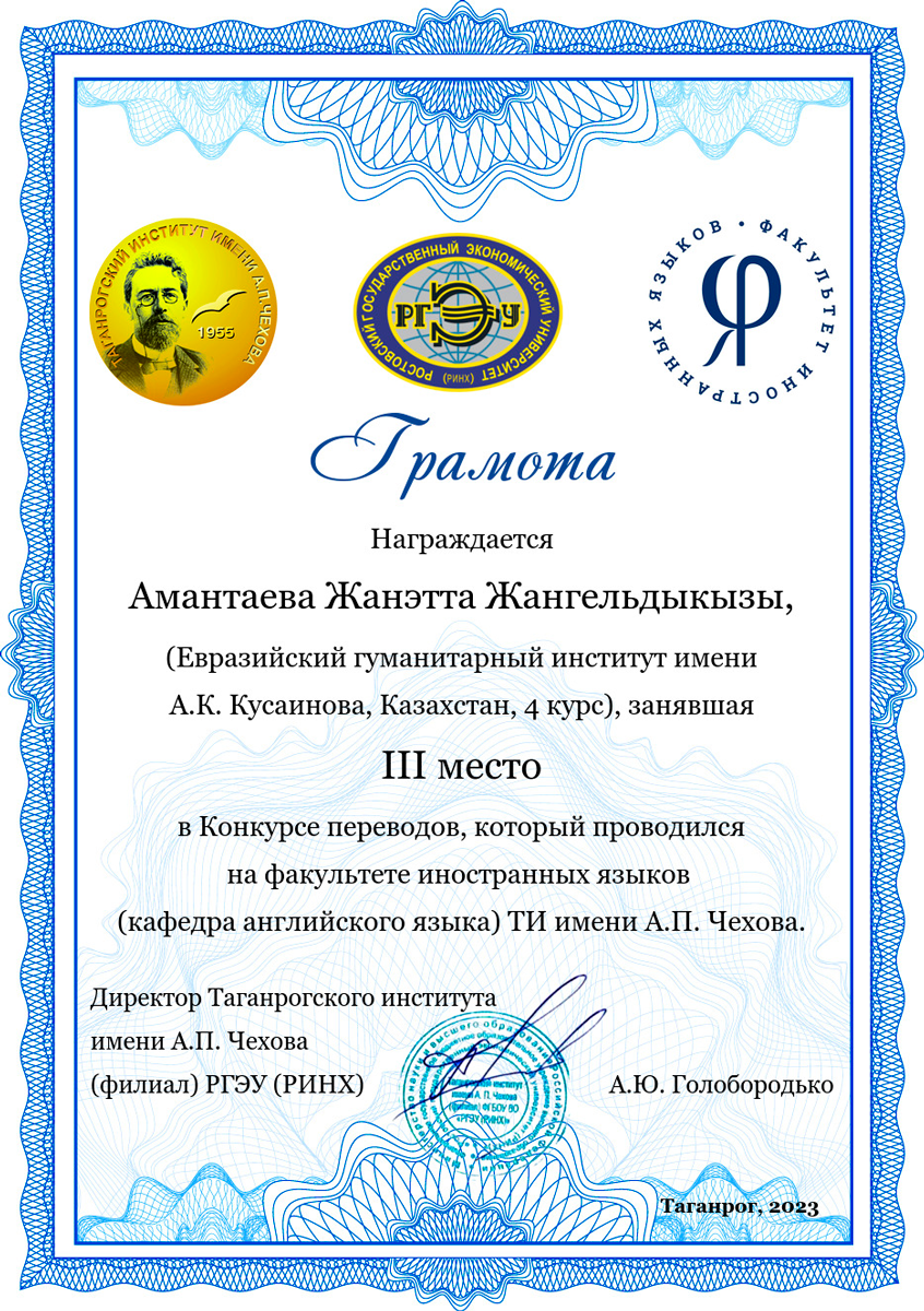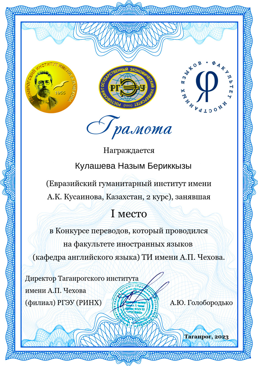 Әр номинацияда қатысушыларға таңдау үшін бірнеше мәтін ұсынылды. Байқауға қатысқан А.Қ. Құсайынов атындағы Еуразия гуманитарлық институтының шетел тілдері кафедрасының студенттері жүлделі орындарға ие болды: