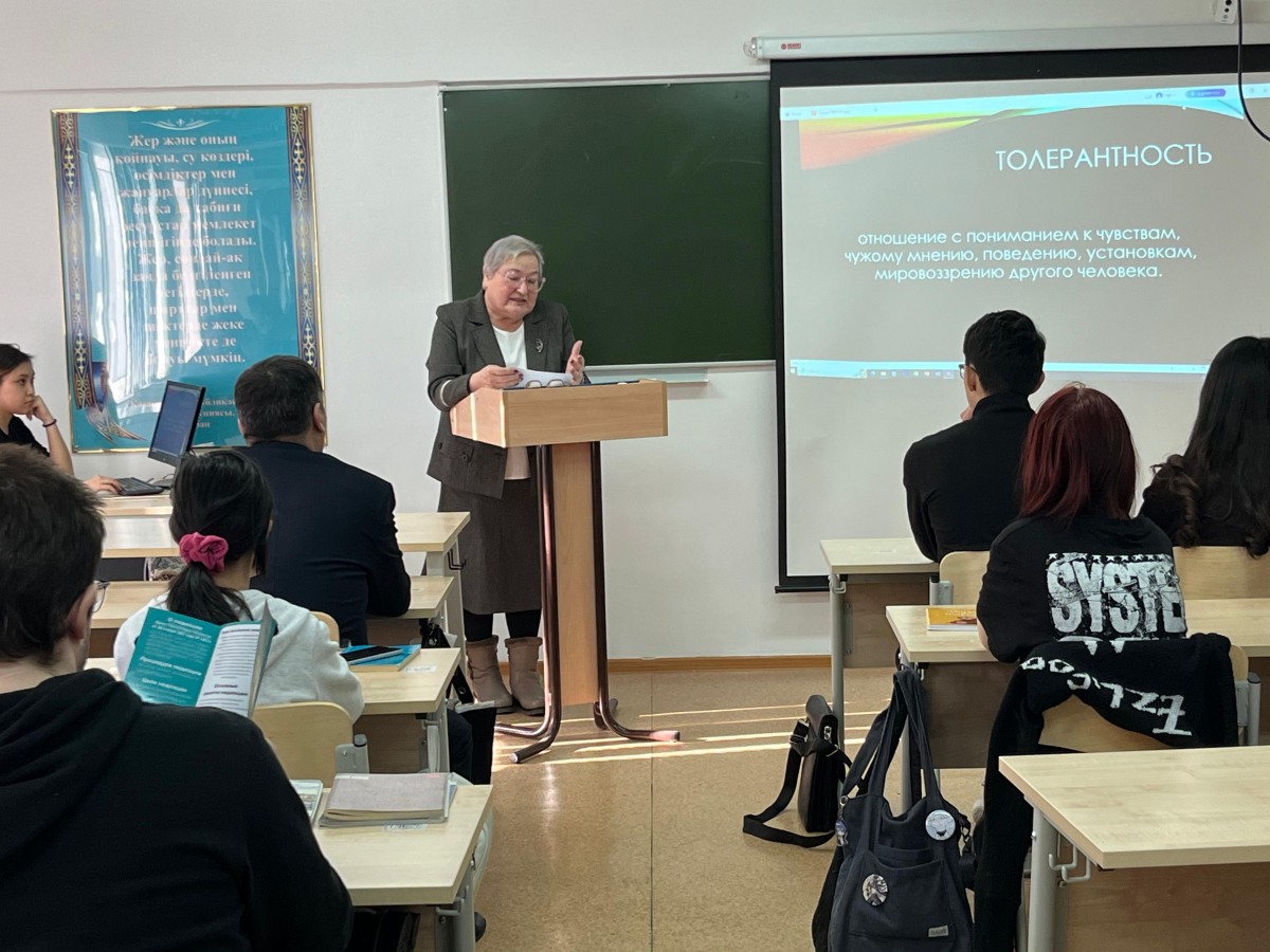 Дәріс барысында интерактивті форматта келесі мәселелер: қазақстандық қоғамдағы этносаралық толеранттылық және медиация, этномедиация, Қазақстан халқы Ассамблеясының көпмәдениетті орган ретіндегі рөлі және т. б. талқыланды.