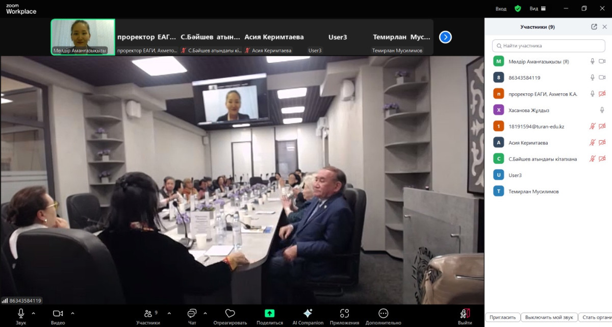 А.Қ. Құсайынов атындағы Еуразия гуманитарлық институтының доценті, философия докторы (PhD) Мөлдір Аманғазықызы «Тұран» университетінің ұйымдастыруымен өткізілген жазушы, журналист Сара Мыңжасарованың 100 жылдығына арналған «Білім мен ғылымның ықпалдастығы және қазіргі массмедианың өзекті мәселелері» атты республикалық ғылыми-тәжірибелік дөңгелек үстелде баяндама жасады.