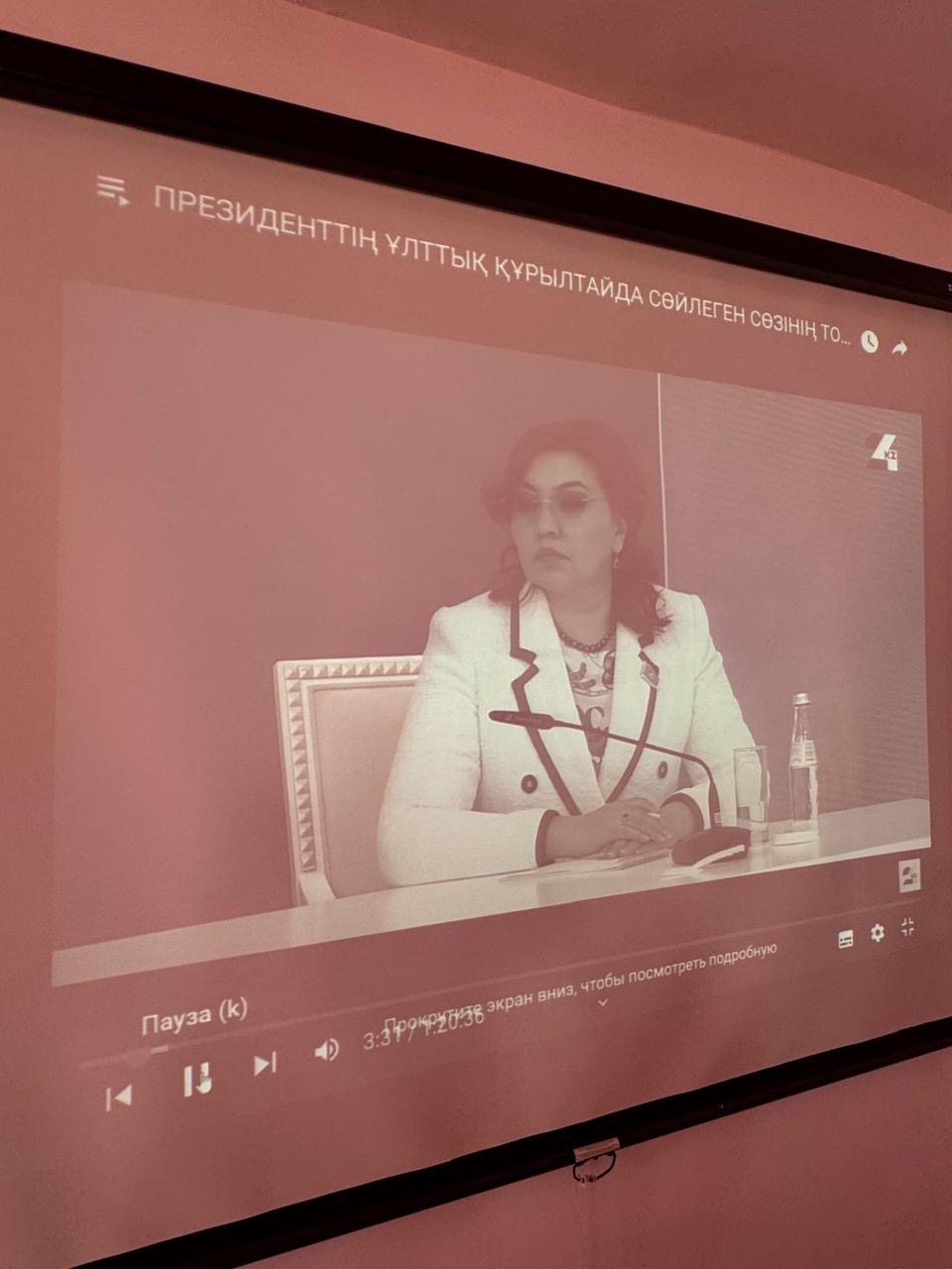 Кураторлық сағат барысында студенттер Ұлттық құрылтай отырысының қорытындыларын талқылап, көтерілген мәселелер мен олардың қоғамның дамуына әсерін талдады. Іс-шара интерактивті форматта өтті, оқушылардың сыни ойлауы мен азаматтық жауапкершілігін дамытуға ықпал етті.