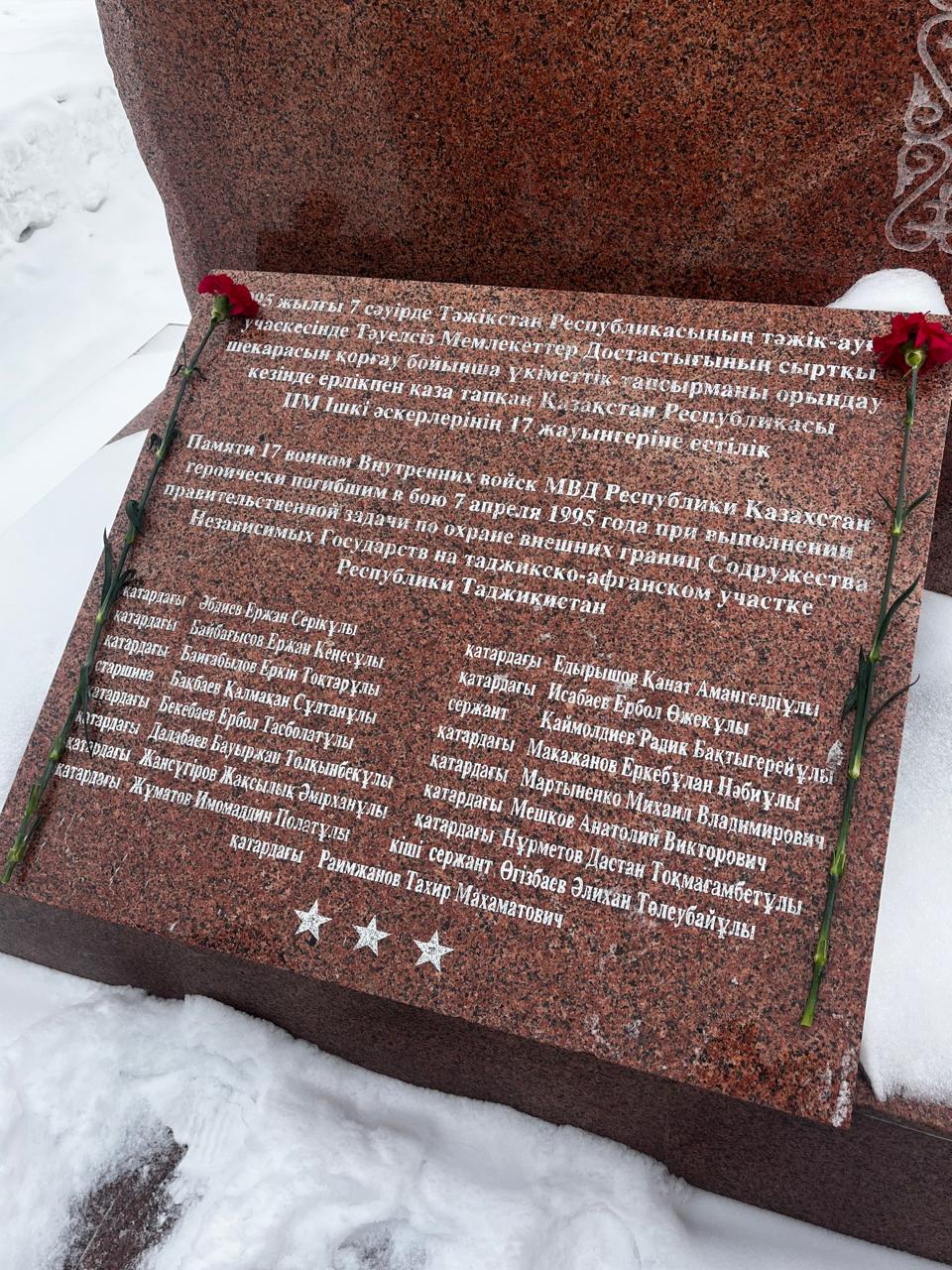 17 жауынгерін еске алу 1995 жылғы 7 сәуір – қазақстандық күш құрылымдары тарихындағы ең қайғылы күндердің бірі. Бұл күні Қазақстан Республикасы ІІМ Ішкі әскерлерінің 17 әскери қызметшісі Тәжікстан Республикасының Тәжік-Ауған учаскесінде Тәуелсіз Мемлекеттер Достастығының сыртқы шекараларын күзету жөніндегі үкіметтік міндеттерді орындау кезінде батырлықпен қаза тапты. Олар ТМД аумағындағы бейбітшілік пен тұрақтылықты қорғап, өз міндеттерін абыроймен орындады.