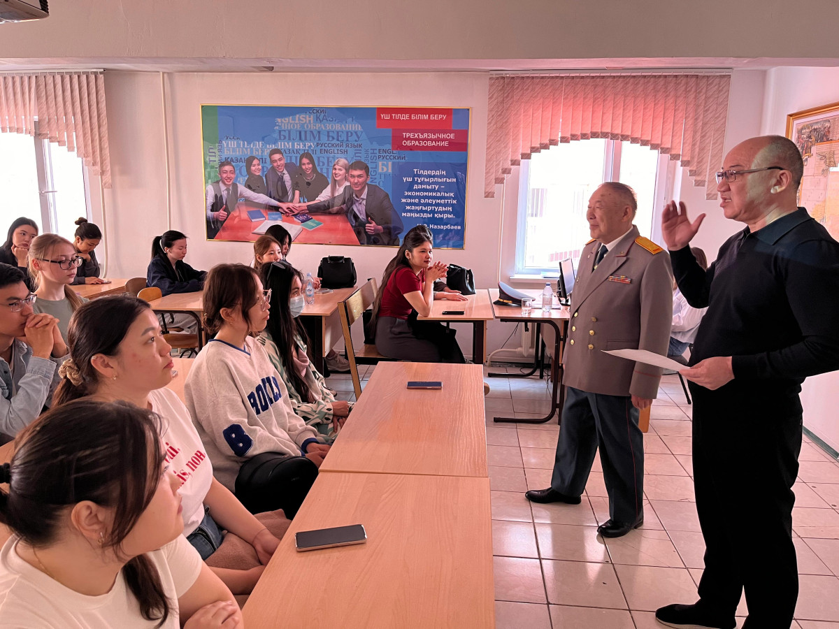 Педагогика және тарих кафедрасында «Отан қорғаушы» мерекесіне арналған «Ерлік сабағы» тақырыбында кездесу өтті.