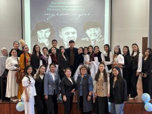 28 қыркүйек – қазақ әдебиетінің алыптары дүниеге келген күн. Осы орайда А. Құсайынов атындағы Еуразия гуманитарлық институтының қазақ тілі мен әдебиеті кафедрасының 1–2 курс студенттері профессор Л.Н. Дәуренбекованың ұйымдастыруымен «Ұлы тұлғаларға тағзым: М. Әуезов, О. Бөкей, Ш. Мұртаза» тақырыбында әдеби-сазды кеш өткізді.