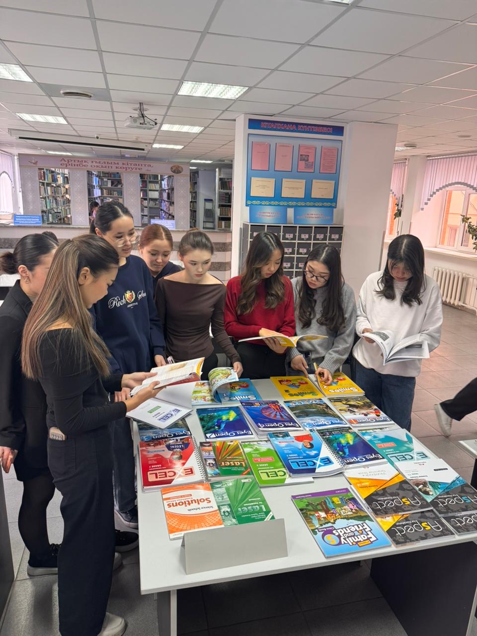 2025 жылғы 30 қазандаШТ-23-02 тобы куратор Г. К. Темірғалиеваның жетекшілігімен А. К. Құсайынов атындағы Еуразия гуманитарлық институтының бас корпусында ұйымдастырылған жаңа оқулықтар мен оқу құралдарының көрмесіне қатысты.