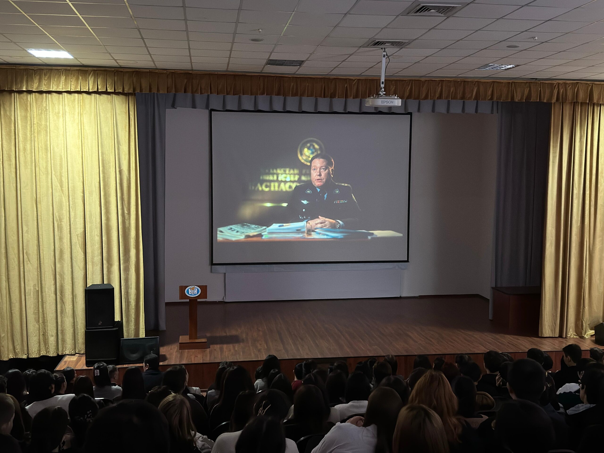 Фильм көрсетілімінен кейін заң пәндері кафедрасының доценті А.С. Абельдинов студенттермен түсіндіру жұмыстарын жүргізіп, заң бұзушылықтың түрлері, қылмыстық жауапкершілік және оның салдары туралы ақпарат берді. Сонымен қатар студенттермен сұрақ-жауап жүргізілді.