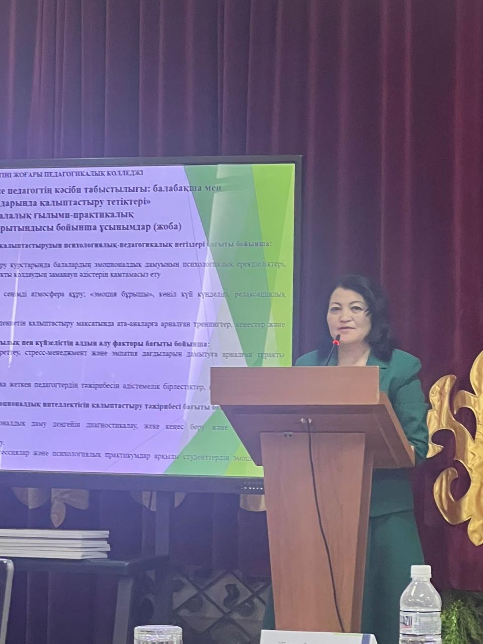 Аталған конференцияның пленарлық отырысында педагогика және тарих кафедрасының доценті, п.ғ.к. Ақжарқын Бадел «Мектепке дейінгі білім беру ұйымдарында педагогтердің эмоционалдық интеллектін дамыту тетіктері: теория және тәжірибе» тақырыбында баяндама жасап, мектепке дейінгі ұйым тәрбиешісінің эмоционалдық интеллектін тәжірибеде қолданудың маңызын жасанды интелекті арқылы көрсетті.