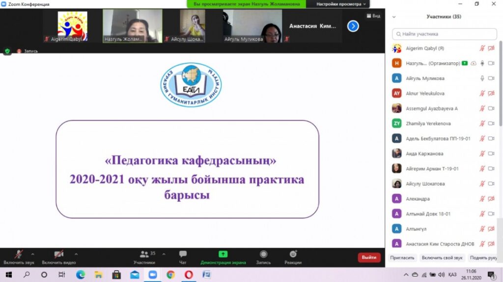 ЖаңалықтарО производственной практике на кафедре педагогики: онлайн конференция Модератор-1 Сайта / 26.11.2020
