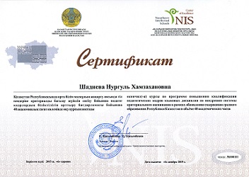 Доценты кафедры казахской и русской филологии Н.Х. Шадиева и А.Б. Шормакова прошли курсы повышения квалификации преподавателей казахского языка в Назарбаев Интеллектуальной школе и получили сертификаты.