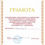 Поздравляем студентов команды «ЕАГИ қырандары» Козлова Евгения, ЮР-4-15, Рыбачук Владимира, ЮР-4-15, Тугубаева Мәди, ЮК-3-17, научного руководителя м.ю.н., старшего преподавателя Сәулен Нұржан, занявших 1 место по итогам олимпиады среди студентов юридических специальностей, посвященной памяти академика Акылбаева Ж.С., проходившей на базе Академии «Болашак» г.Караганды