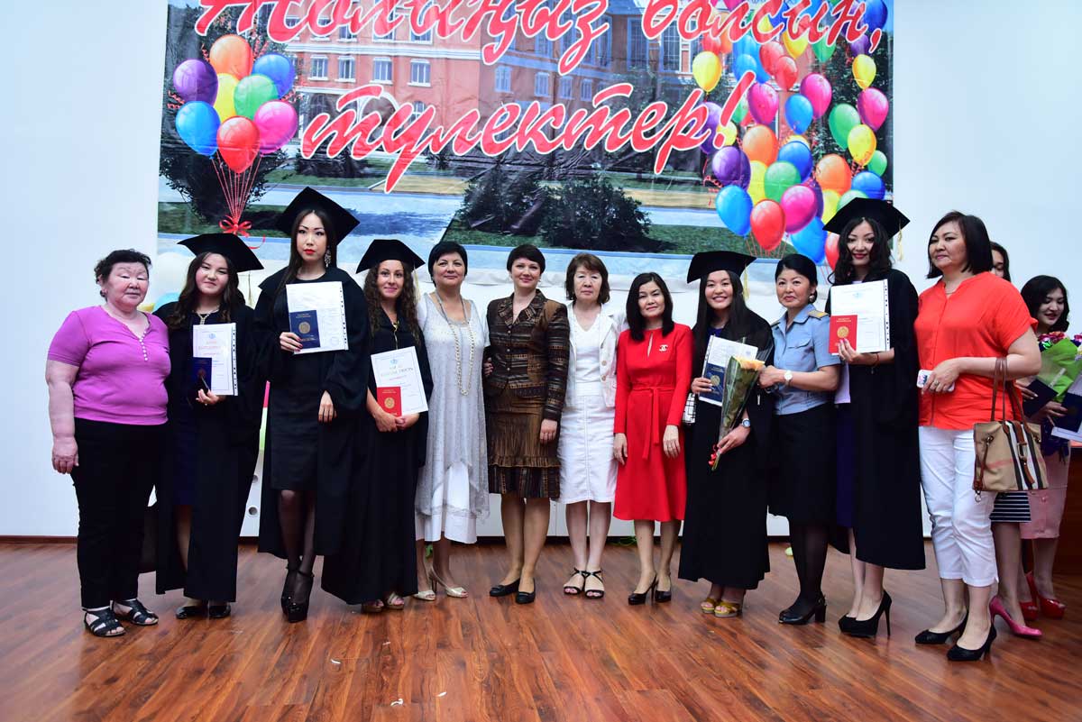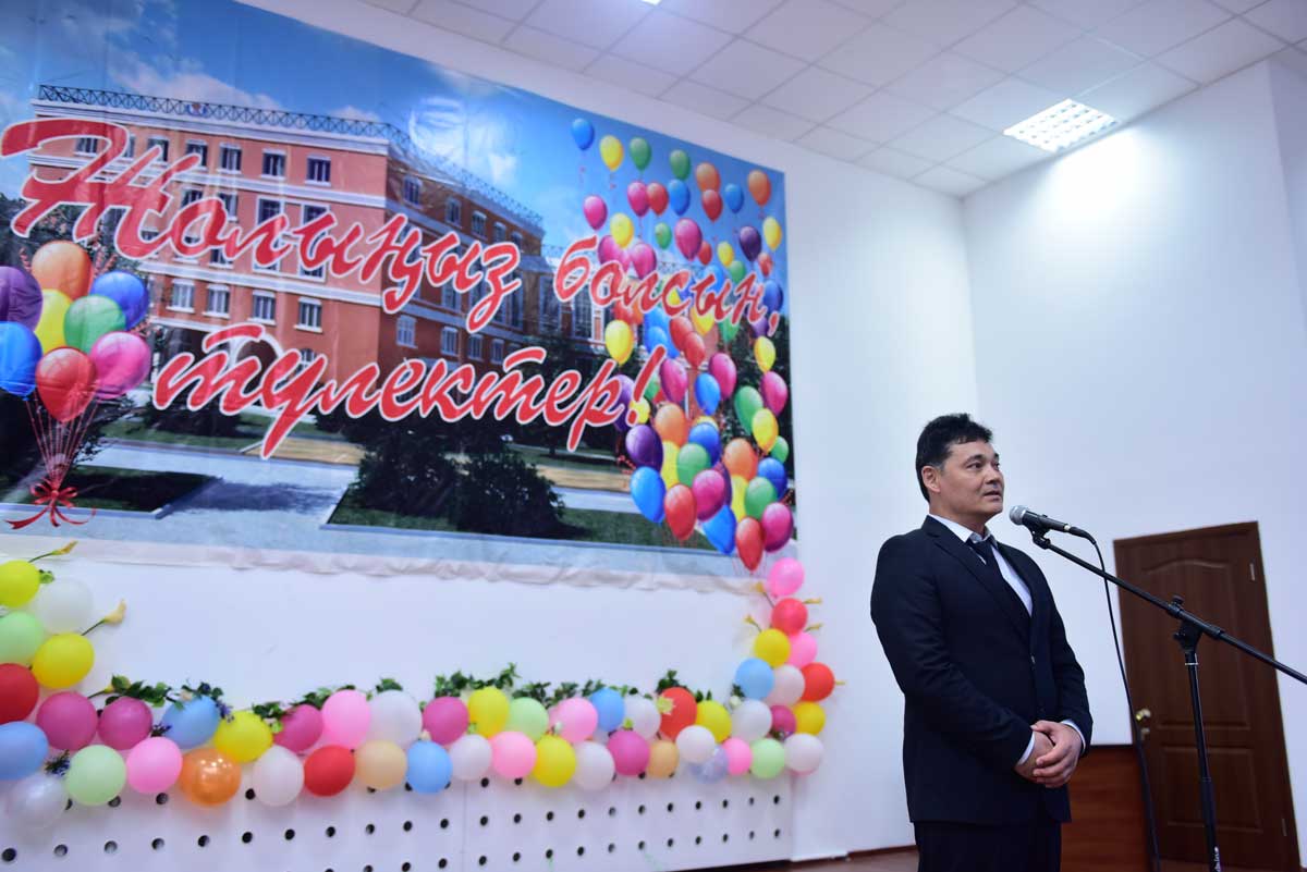Также выпускников поздравили: проректор по учебной и научной работе, академик, доктор исторических наук, профессор Ахметов Кадыр Абильжанович, заведующий кафедрой педагогики, доктор педагогических наук, профессор Сарсекеев Бауыржан Сапарович, заведующая кафедрой казахской и русской филологии, кандидат филологических наук, доцент Кокишева Назерке Магазовна, доцент кафедры «Экономических и математических дисциплин», кандидат технических наук Тажбенова Гульжан Дальтоновна.
