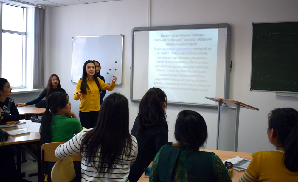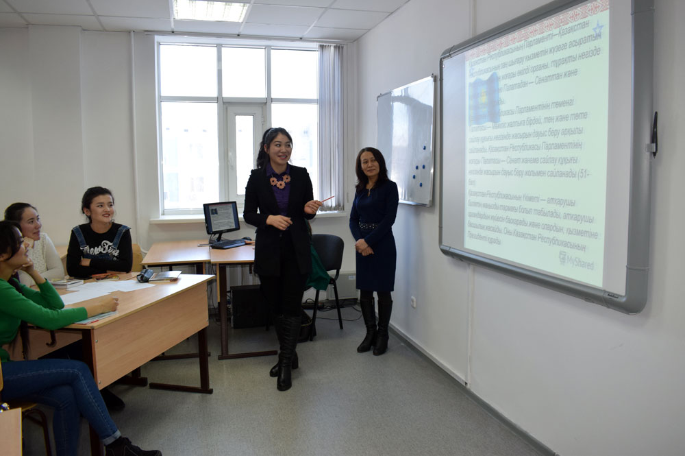 25 января 2017 году магистр науки, старший преподаватель кафедры «Казахской и русской филологии» А.К. Нурбанова провела кураторский час в группе КЯЛ-14-02 по специальности «Казахский язык и литература» на тему «Система власти в Казахстане». Он был посвящен Обращению Президента Республики Казахстан по вопросам перераспределения полномочий между ветвями государственной власти. Студенты выступили в поддержку предложенного лидером страны плана по модернизации системы государственного управления. модернизация политической системы, обнародованная Лидером нации, направлена на укрепление государственности, оптимальное взаимодействие всех трех ветвей власти и повышение ответственности каждой из них.