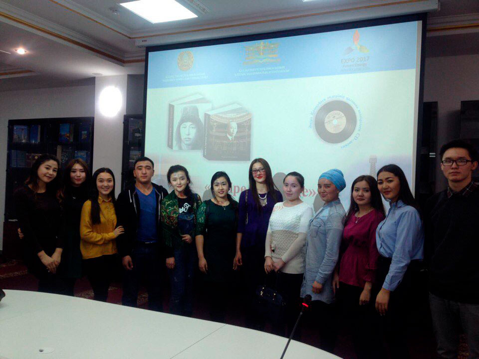 1 февраля этого года в Национальной академической библиотеке прошла презентация книги «Әміре Парижде», посвященное известному певцу Амре Кашаубаеву, который покорил Париж своим неповторимым пением. Автор замечательной книги заслуженный деятель РК, музыковед, искусствовед, исполнитель народной музыки Жаркын Шакаримулы. Книга была выпущена накануне празднования 25- летия Независимости нашей страны и проведения ЭКСПО-2017, а также 130-летию великого певца. На этот вечер были приглашены студенты 3 курса специальности «Казахский язык и литература».