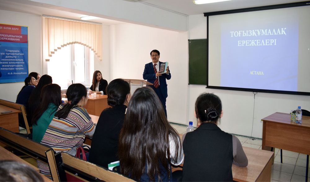 В рамках данного мероприятия заслуженный тренер Республики Казахстан, кандидат филологических наук Шотаев Максат Есенбекович провел для студентов мастер-класс по увлекательной национальной игре «Тоғызқумалақ».