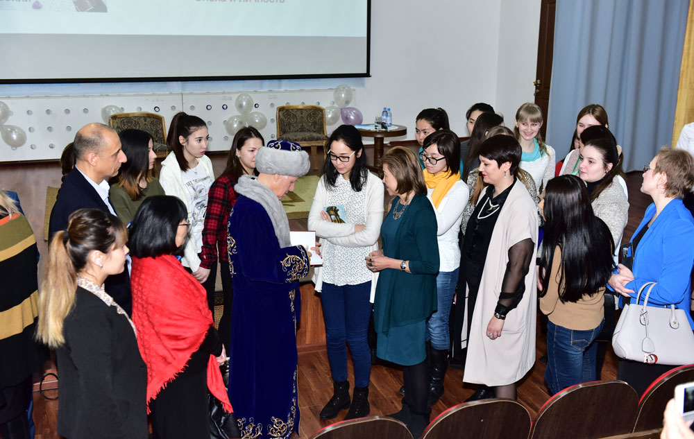 С приветственным словом выступил первый проректор, кандидат психологических наук, профессор Исмаилов Амангельды Джаксылыкович. Приглашенными гостями встречи были: президент Международной ассоциации общественных объединений «Международный Центр гуманной педагогики», директор и научный руководитель детской художественной студии «Басти-Бубу», кандидат социологических наук, психолог Паата Шалвович Амонашвили ; доктор филологических наук, профессор, заместитель директора Образовательного центра “Гуманная педагогика” (г. Астана) Нурсулу Жамалбековна Шаймерденова ; кандидат филологических наук, доцент Казахской национальной академии искусств имени Т.К. Жургенева Мендыганым Джамалбековна Шаймерденова.