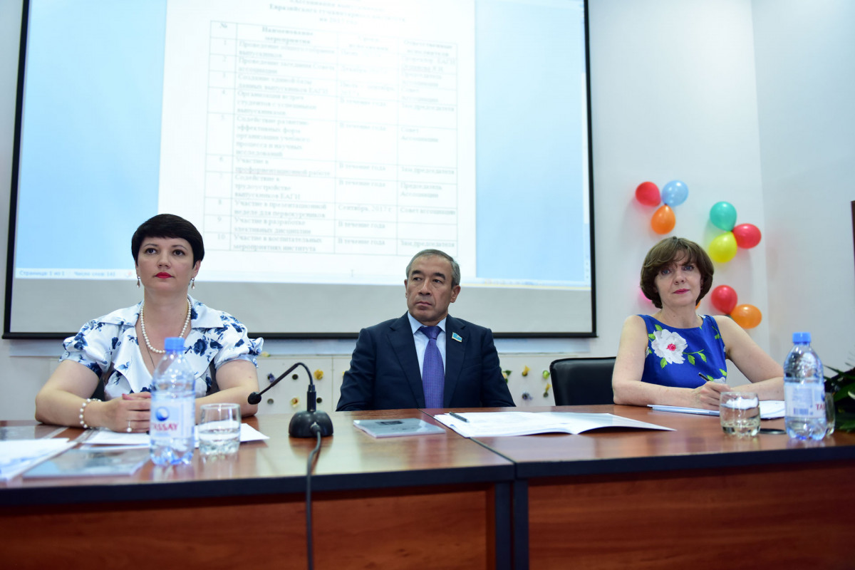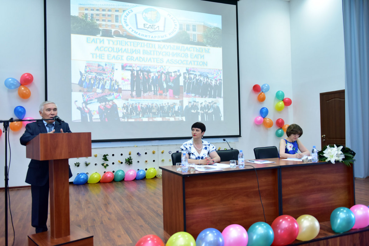 17 июня 2017 года в Евразийском гуманитарном институте прошло собрание Ассоциации выпускников. С приветственным словом выступили: первый проректор А.Д. Исмаилов, проректор по учебной и научной работе К. А. Ахметов. В ходе данного собрания было утверждено Положение об Ассоциации выпускников. Председателем Ассоциации был избран Ахметов Сапар Кайратович, заместителем председателя Даурембеков Ерлан Курманалиевич. Кроме этого были утверждены члены Совета Ассоциации выпускников и план работы. Встреча прошла в дружественной обстановке.