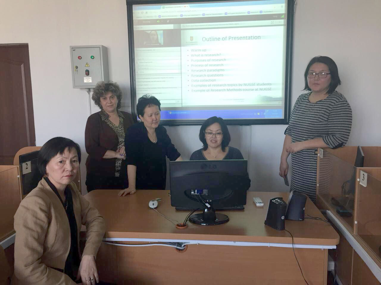 23 ноября 2017 преподаватели кафедры иностранных языков приняли участие в вебинаре на тему “The role and importance of educational research “. Вебинар проводил ассоциированный профессор, доктор при Назарбаев Университете Дюшон Шаматов.