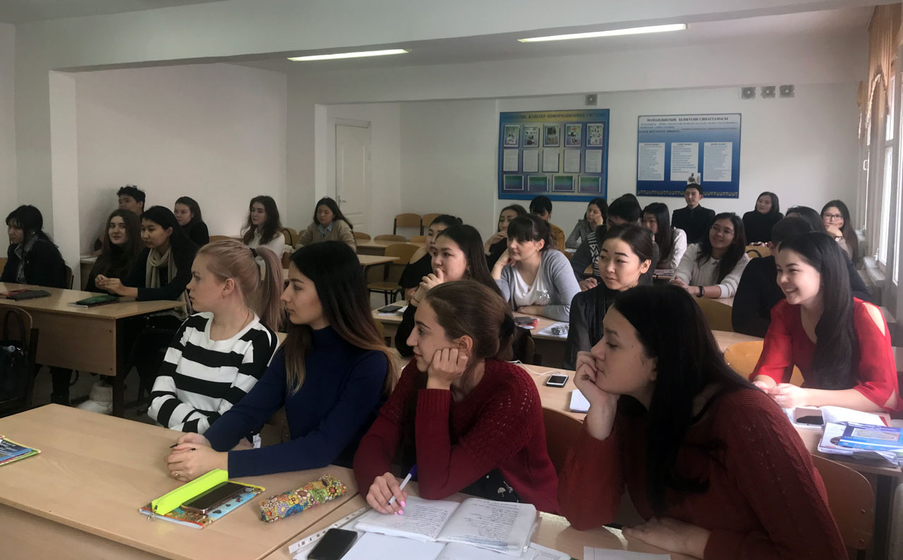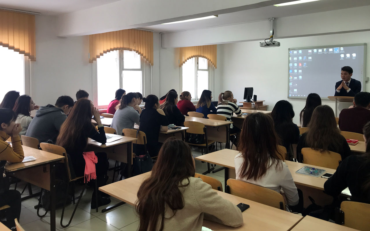 12 декабря 2017 года в целях реализации «Антикоррупционной Хартии» в академических группах ЮК-15-01, ЮР-14-01, ПМНО-15-01, ПД-15-01, ПП-15-01 была проведена гостевая лекция по дисциплине «Основы антикоррупционной культуры» с участием главного специалиста управления профилактики коррупции Департамента Агентства РК по делам Государственной службы и противодействию коррупции по г.Астана Мұсағали Олжаса Ержанұлы.